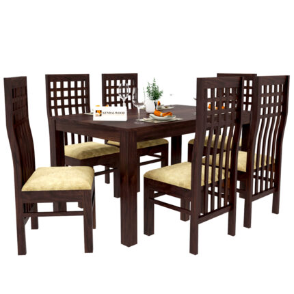 Kendalwood Furniture Premium Dining Room Furniture Wooden Dining Table with 6 Chairs Solid Wood 6 Seater Dining Set (Finish Color -Brown Finish, Knock Down)