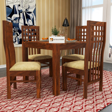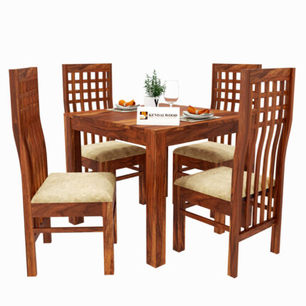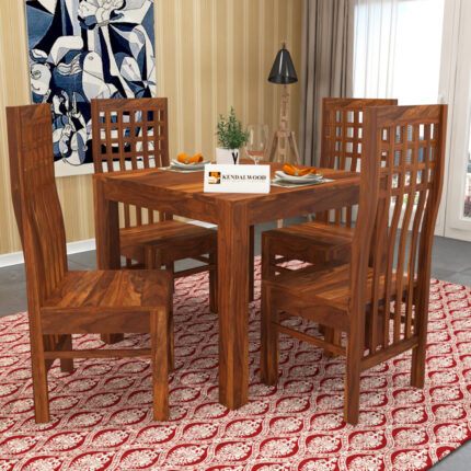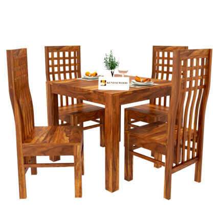 Kendalwood Furniture Wooden Dining Table with 4 Chairs Solid Wood 4 Seater Dining Set (Finish Color – Teak Finish)