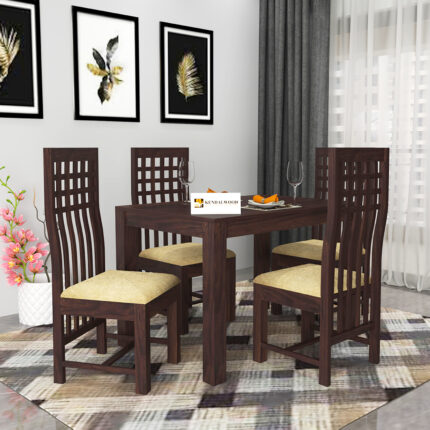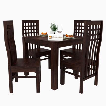 Kendalwood Furniture Wooden Dining Table with 4 Chairs Solid Wood 4 Seater Dining Set (Finish Color – Brown Finish)