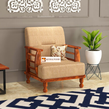 KendalWood™ Furniture 1 Seater Sofa Set for Living Room | Finish Color :- Honey Finish with Cream Cushions