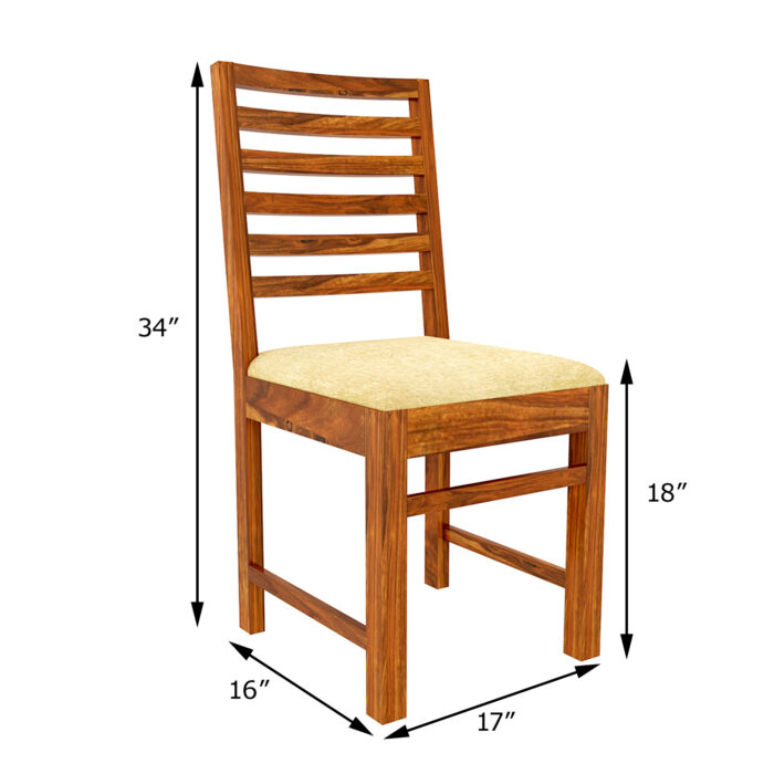 - Product Dimensions: Table : H 30 x W 45 x D 30; Chair : H 34 x W 17 x D 16; Seating Height – 18;(all dimensions in inches) | Chair Weight – 8 Kg | Table Weight – 15 kg . Chair Weight Load Capacity – 120Kg | Table Weight Load Capacity – 300kg | Product Finish Color – Honey Finish With Cream Cushions.