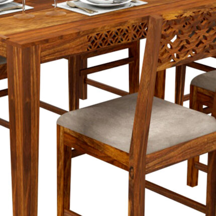 KendalWood™ Furniture Sheesham Wood CNC Cuting Dining Table with Chairs