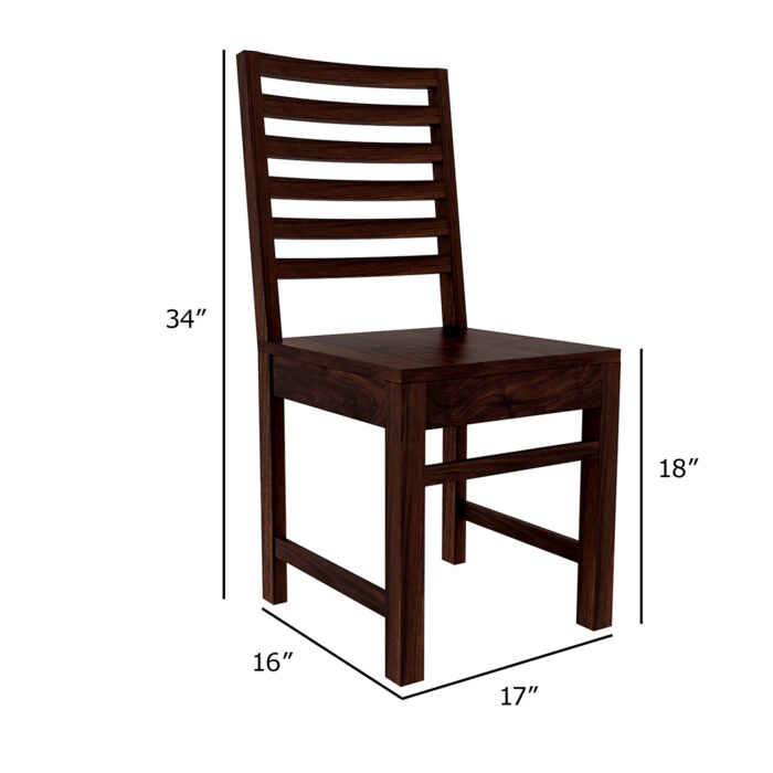 - Product Dimensions: Table : H 30 x W 45 x D 30; Chair : H 34 x W 17 x D 16; Seating Height – 18;(all dimensions in inches) | Chair Weight – 8 Kg | Table Weight – 15 kg . Chair Weight Load Capacity – 120Kg | Table Weight Load Capacity – 300kg | Product Finish Color – Walnut Finish.