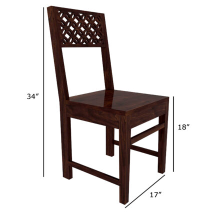 - Product Dimensions (Inch): Square Table : H 30 x W 34 x D 34, Chair : H 35 x W 18 x D 18; Seating Height - 18 (all dimensions in inches) Chair Weight - 8 Kg | Table Weight - 15 kg . Chair Weight Load Capacity - 120Kg | Table Weight Load Capacity - 300kg | Product Finish Color - Walnut Finish