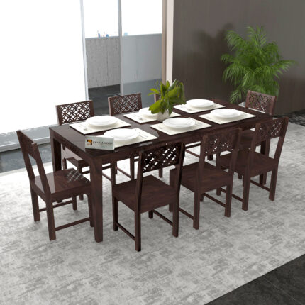 KendalWood™ Furniture Solid (Sheesham) Wood Dining Table with 8 Chairs
