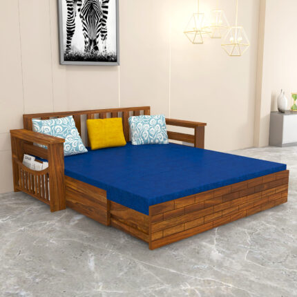 KendalWood Furniture Solid Wood Sofa Cum Bed | Wooden Bed com Sofa with Storage Bed