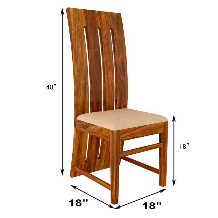 - Product Dimensions: Table : H 30 x W 57 x D 35; Chair : H 43 x W 18 x D 17; Seating Height - 18;(all dimensions in inches) | Chair Weight - 10 Kg | Table Weight - 22 kg . Chair Weight Load Capacity - 120Kg | Table Weight Load Capacity - 300kg | Product Finish Color - Honey Finish With Cream Cushion.