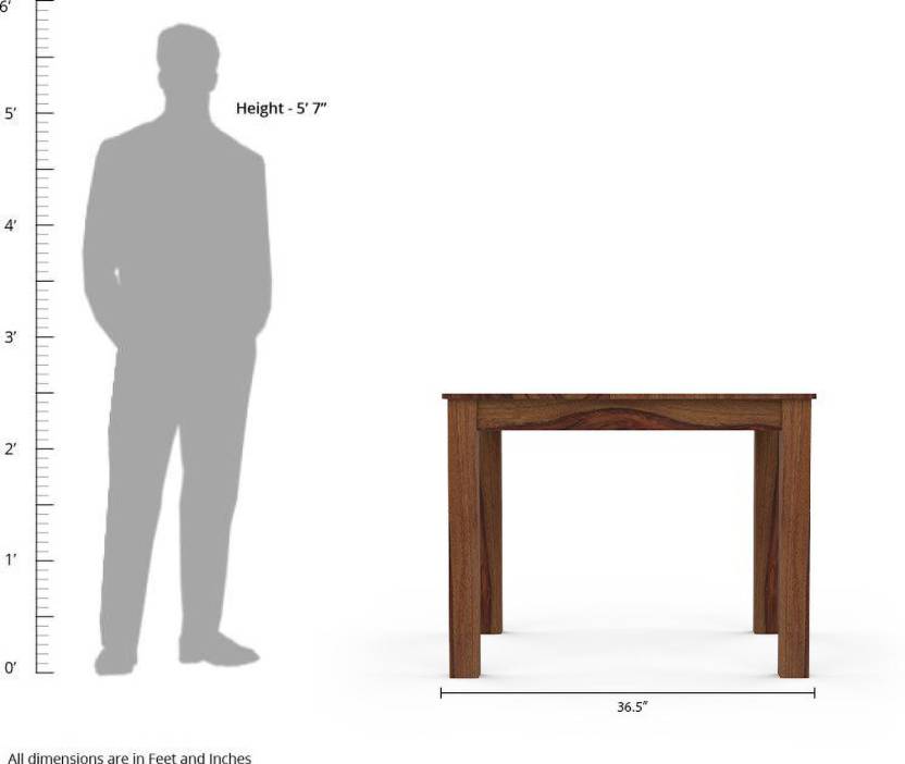 - Product Dimensions (Inch): Table : H 30 x W 34 x D 34 ; Chair : H 40 x W 18 x D 18; Seating Height - 18 | Color Finish - Mahogany Finish with Gray Cushions ( Chair Weight - 8 Kg | Table Weight - 15 kg . Chair Weight Load Capacity - 120Kg | Table Wright Load Capacity - 300kg )